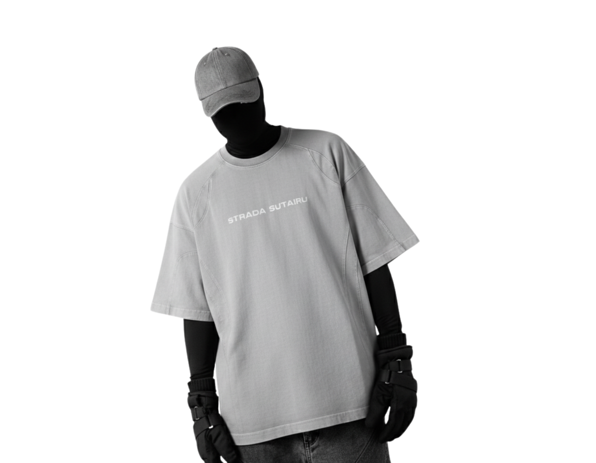 This Gray Acid Wash Panelled T-shirt features a unique acid wash for a vintage, textured look. Panelled construction adds structure and enhances durability for everyday wear.